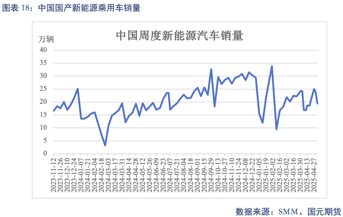 需求:从调研情况来看,5月下游需求或与4月持平,低于市场预期,下游正极企业对正极材料补库积极性下降,以去库为主,考虑到下游碳酸锂库存已累至高位,预计短期内下游采购放缓。