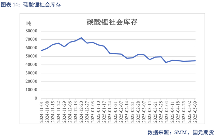 截至5月9日,SMM碳酸锂社会库存为44800吨,较上周增620吨。