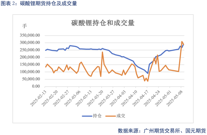 截至5月9日,碳酸锂持仓290303手,较上周增45574手;成交289402手,较上周增174864手。