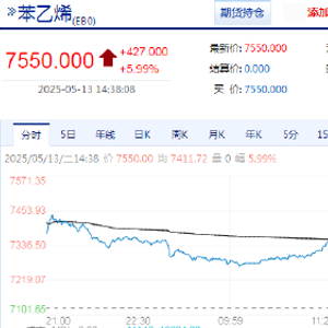 快讯:苯乙烯(EB)主力合约触及涨停