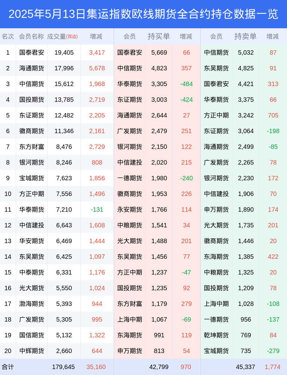 13日集运指数欧线期货上涨12.38%,最新持仓变化
