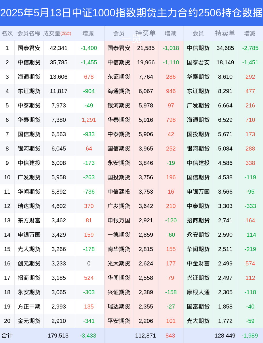 13日中证1000指数期货下跌0.43%,最新持仓变化