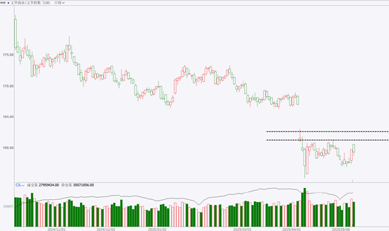 中美贸易关系的缓和在一定程度上改善了市场对宏观环境的态度,为市场注入了积极情绪,但即便如此,交易者在具体的操作上还是应当保持谨慎。从技术分析的角度来看,文华商品指数在162一带存在效力较强的压力区间,交易者后续应重点关注价格能否顺利突破这一重要关口。