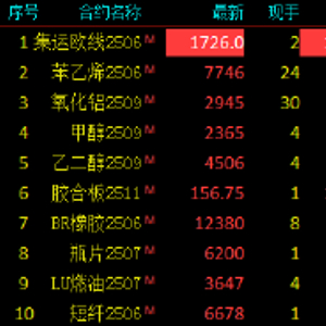 2025年5月14日,午盘收盘,国内期货主力合约多数上涨。集运欧线主力合约封涨停板,涨幅15.99%;苯乙烯(EB)涨超4%,甲醇、氧化铝、乙二醇(EG)涨超3.5%。跌幅方面,尿素跌近1%。