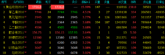 收评|国内期货主力合约多数上涨 集运欧线主力合约封涨停板