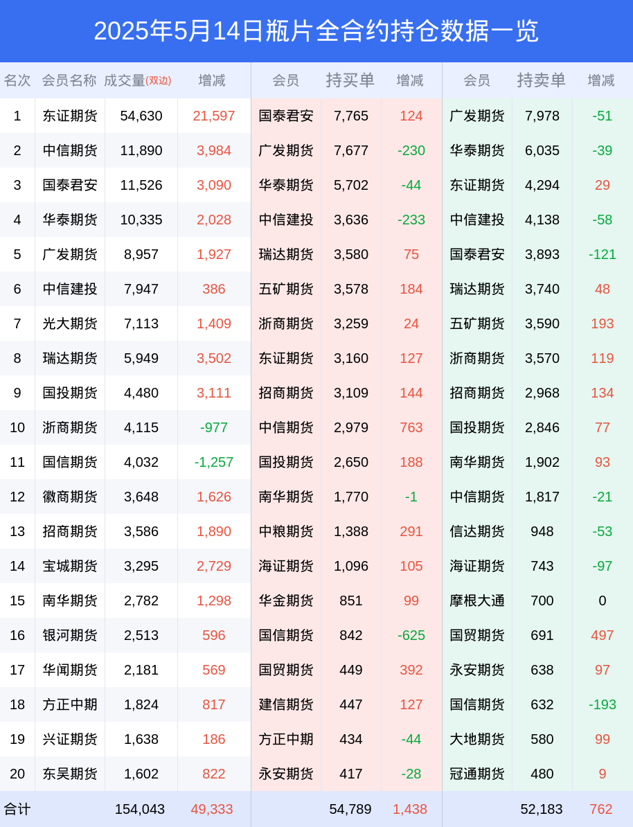 新浪期货 根据交易所数据,截至5月14日收盘主力合约瓶片2507,涨跌+3.23%,成交量7.96万手,持仓数据显示前20席位呈现净多,差额头寸为262手。