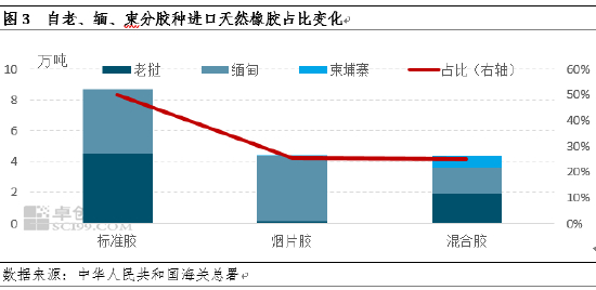 自缅甸、老挝进口标准胶、烟片胶增量明显