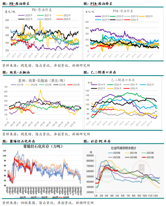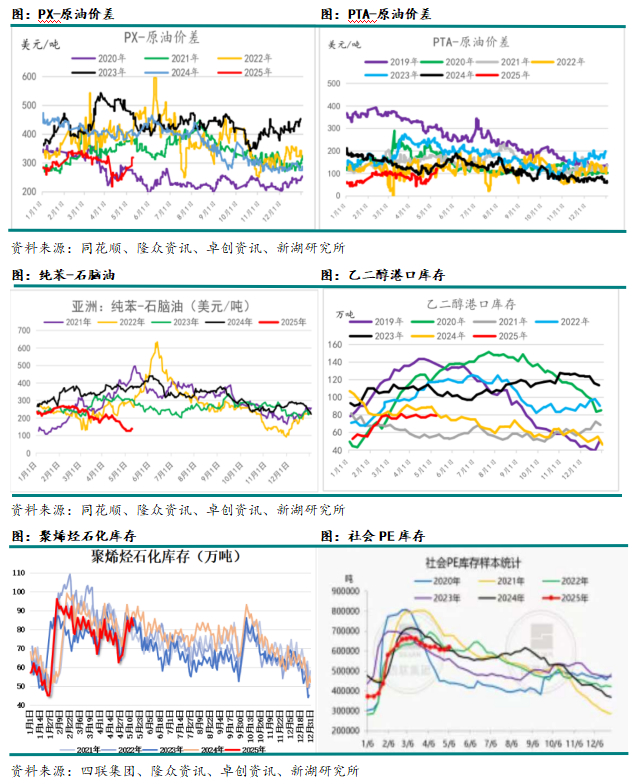 比如PX、PTA、纯苯三个品种和原油的价差已经下降至2020年疫情时期水平,甚至更低。比如PVC、塑料、PP、甲醇等品种,尤其是PVC,的绝对价格下降至低水平。在这种情况下,市场看涨心理往往较强,只要有利多,价格就容易拉涨。估值最低的聚酯产业链就成为了本轮上涨的第一环。