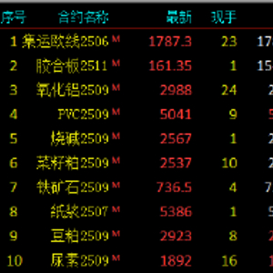 2025年5月15日,国内期货主力合约涨跌互现。集运欧线涨超8%,氧化铝涨超3%,烧碱、聚氯乙烯(PVC)涨超2%。跌幅方面,SC原油跌近5%,沪金跌超3%,沪银、液化石油气(LPG)、燃料油跌超2%。