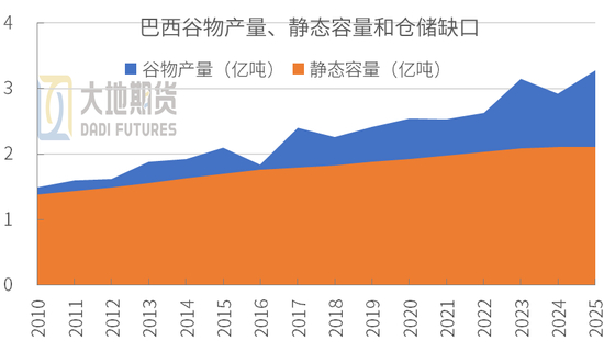 巴西仓储静态容量与谷物产量