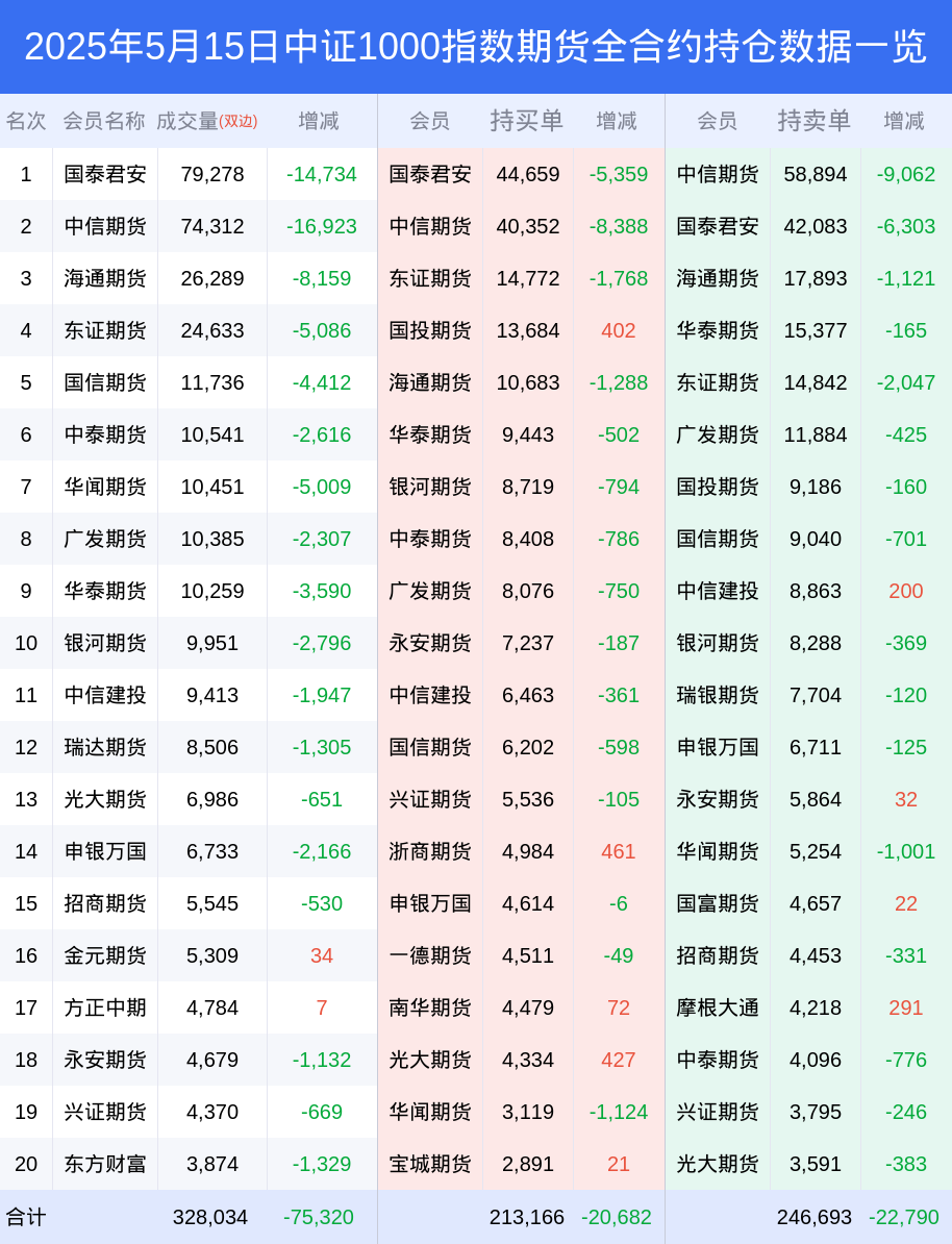 15日中证1000指数期货下跌1.28%,最新持仓变化