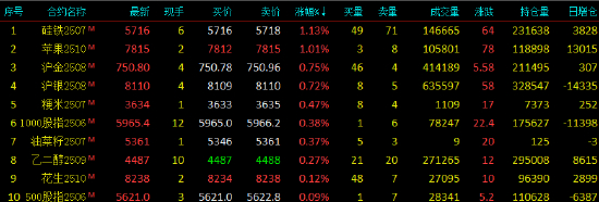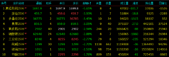 2025年5月16日,早盘收盘,国内期货主力合约多数下跌。集运欧线跌超5%,SC原油、多晶硅、焦煤跌超3%,工业硅、氧化铝、碳酸锂、纯碱、玻璃跌超2%。涨幅方面,硅铁、苹果涨超1%,沪金、沪银涨近1%。