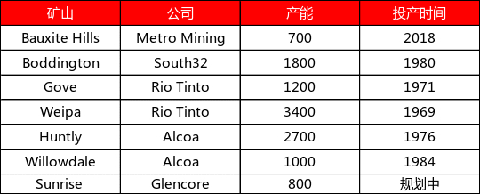 生产分布:全球铝土矿年产量约4.5亿吨,前三生产国为几内亚、澳大利亚、中国。