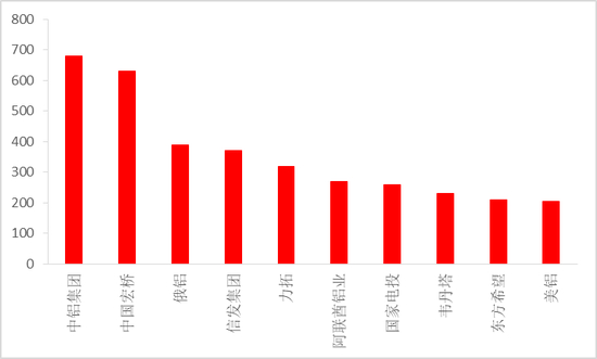 2023年全球电解铝生产企业产量前十中,国内外企业各占五席,中国企业为中铝、魏桥、信发、国电投、东方希望,海外企业前五名为俄罗斯铝业、力拓、阿联酋铝业、韦丹塔、美铝。