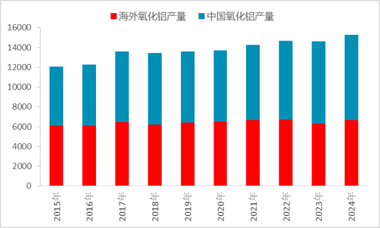需求驱动:全球95%氧化铝用于电解铝生产,2024年全球电解铝产量7279万吨,中国占比60%;海外电解铝十年增速仅9%,中国增速达38%。