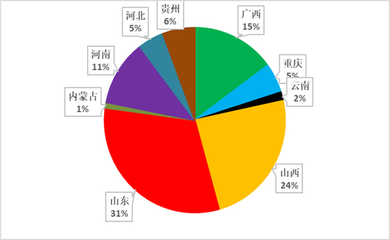 中国产能:山东、山西、广西为核心产区,企业高度集中(前十大占比86%)。