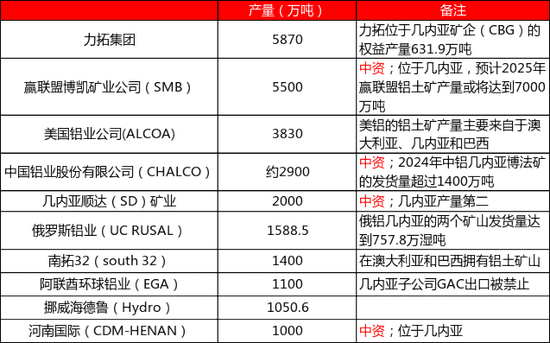 当地矿业投资存在高昂的资源税以及基建、人工成本,我国未在当地有铝土矿开发,主要由美铝、力拓、梅特罗矿业、南32四家企业运作。2024年,澳大利亚铝土矿产量为1.002亿吨,其中4260万吨铝土矿出口。