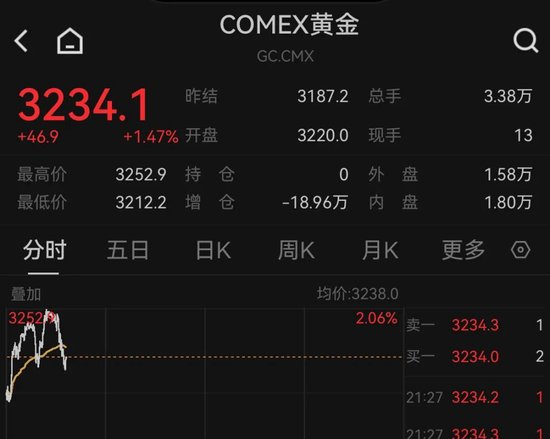 金价突发巨震!一度重回3240美元