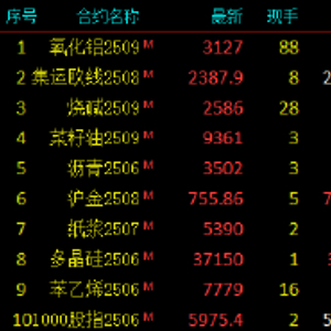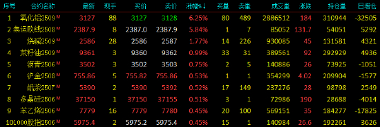 2025年5月19日,国内期货主力合约多数下跌。氧化铝涨超6%,集运欧线涨超5,烧碱涨超1%;跌幅方面,焦煤、碳酸锂跌超2%,纯碱、工业硅、尿素、焦炭、甲醇跌超1%。
