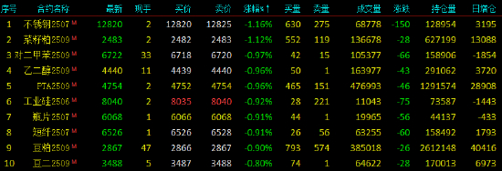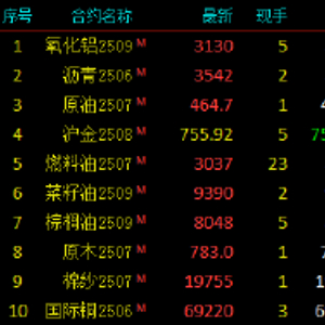 2025年5月20日,早盘开盘,国内期货主力合约跌多涨少,氧化铝涨超1%,沥青、菜油、棕榈油涨近1%。跌幅方面,对二甲苯(PX)、PTA、不锈钢(SS)跌超1%,瓶片、乙二醇、短纤、菜粕、烧碱跌近1%。