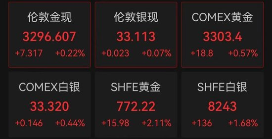 美东时间5月20日,国际金价大涨。截至收盘,COMEX黄金期货收涨1.83%,报3292.6美元/盎司;COMEX白银期货收涨2.32%,报33.26美元/盎司。北京时间5月21日,Wind数据显示,现货黄金短暂突破3300美元大关。截至北京时间6:32,伦敦金现涨0.22%,COMEX黄金期货涨0.57%。