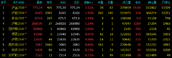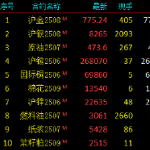 2025年5月21日,早盘开盘,国内期货主力合约涨跌互现,沪金涨超2%,沪银、SC原油、国际铜、沪锡涨超1%,棉花、菜粕、纸浆涨近1%。跌幅方面,烧碱、丁二烯橡胶、苯乙烯、低硫燃料油(LU)、氧化铝跌超1%,橡胶跌近1%。
