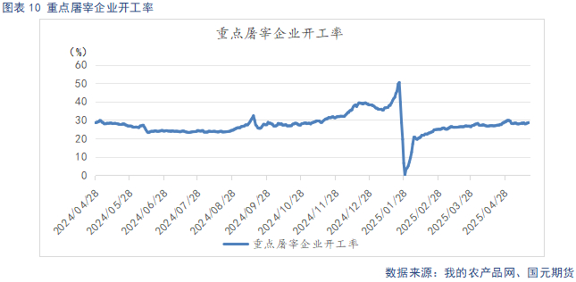 截止5月20日,重点屠宰企业开工率为28.51%,较上周回升0.51%。冷冻肉库容率17.28%,较上周环比上升0.01%。五一过后,节日效应淡化,加之天气逐步转热,终端需求回落,屠企开工率下滑。近期在端午节前夕的备货需求推动下,开工率小幅回升。整体来看,需求表现偏弱,开工率窄幅波动。当前市场冻肉需求疲弱,出库偏缓,且部分屠企因鲜肉销售不畅,存在被动入库的现象,近期冻肉库存小幅增加。