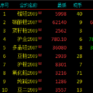 2025年5月22日,国内期货主力合约跌多涨少。锰硅涨超3%,碳酸锂、菜粕、沪金、氧化铝、豆粕、沪银涨超1%;跌幅方面,SC原油跌超3%,燃料油跌超2%,PX、苹果、焦煤、低硫燃料油(LU)、苯乙烯(EB)、PTA、棕榈油、液化石油气(LPG)跌超1%。