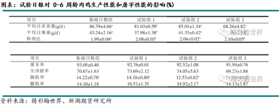 吴庆伟等研究发现:在肉鸡日粮中添加20%发芽小麦,与基础日粮组相比,对0-6周龄肉鸡生长性能影响最接近,能够提高肉鸡的全净膛率和腿肌率,对肉品质具有改善作用,可以提高养殖利润(试验2组为20%芽麦组)。