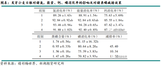 发芽小麦中植酸酶的活性是正常小麦的2-3倍,植酸酶活性的增加大大降低了植酸的含量,提高了动物对日粮中植酸磷的利用效率。