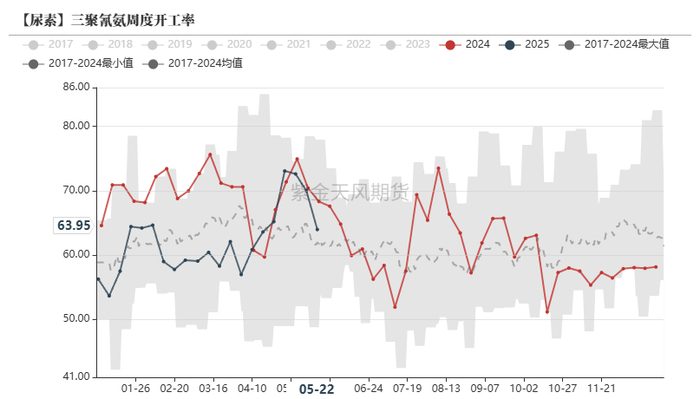 需求:中性 夏季肥需求仍未启动,出口预期减弱,下游采购热情减退,需要关注后续夏季肥启动对尿素需求的变化;三聚氰胺开工率或将回升,但其下游需求仍旧偏弱,对尿素采购难有起色。