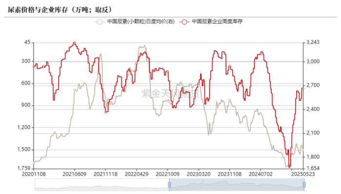 库存:中性 企业库存回升,港口库存增长,夏季肥启动后,企业库存或重回下降轨道。