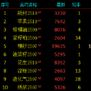 2025年5月28日,国内期货主力合约涨跌互现,苹果涨超1%,棕榈油、菜粕、棉纱涨近1%。跌幅方面,集运指数(欧线)、20号胶、橡胶跌超4%,丁二烯橡胶、沪锡跌超3%,工业硅、红枣、焦煤、沪镍、纯碱跌超2%。