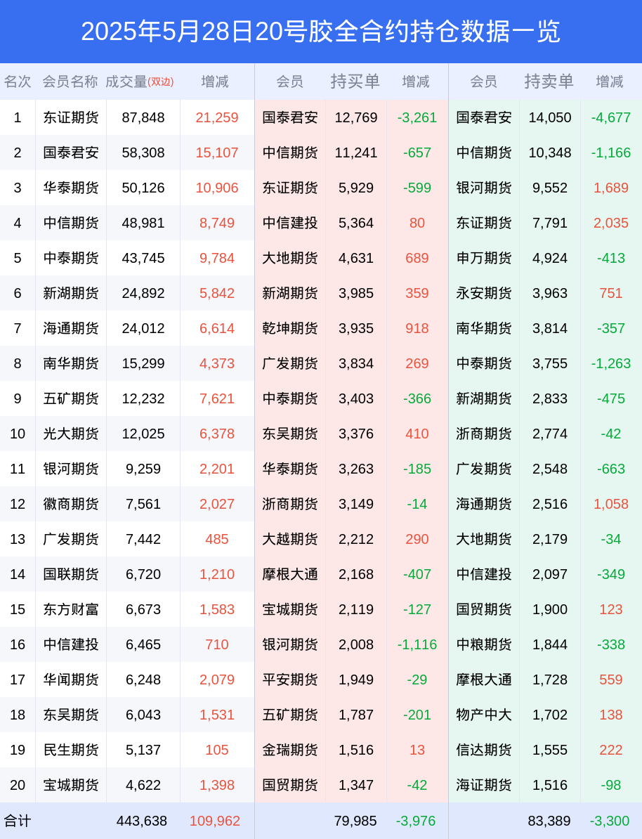 28日20号胶下跌4.52%,最新持仓变化