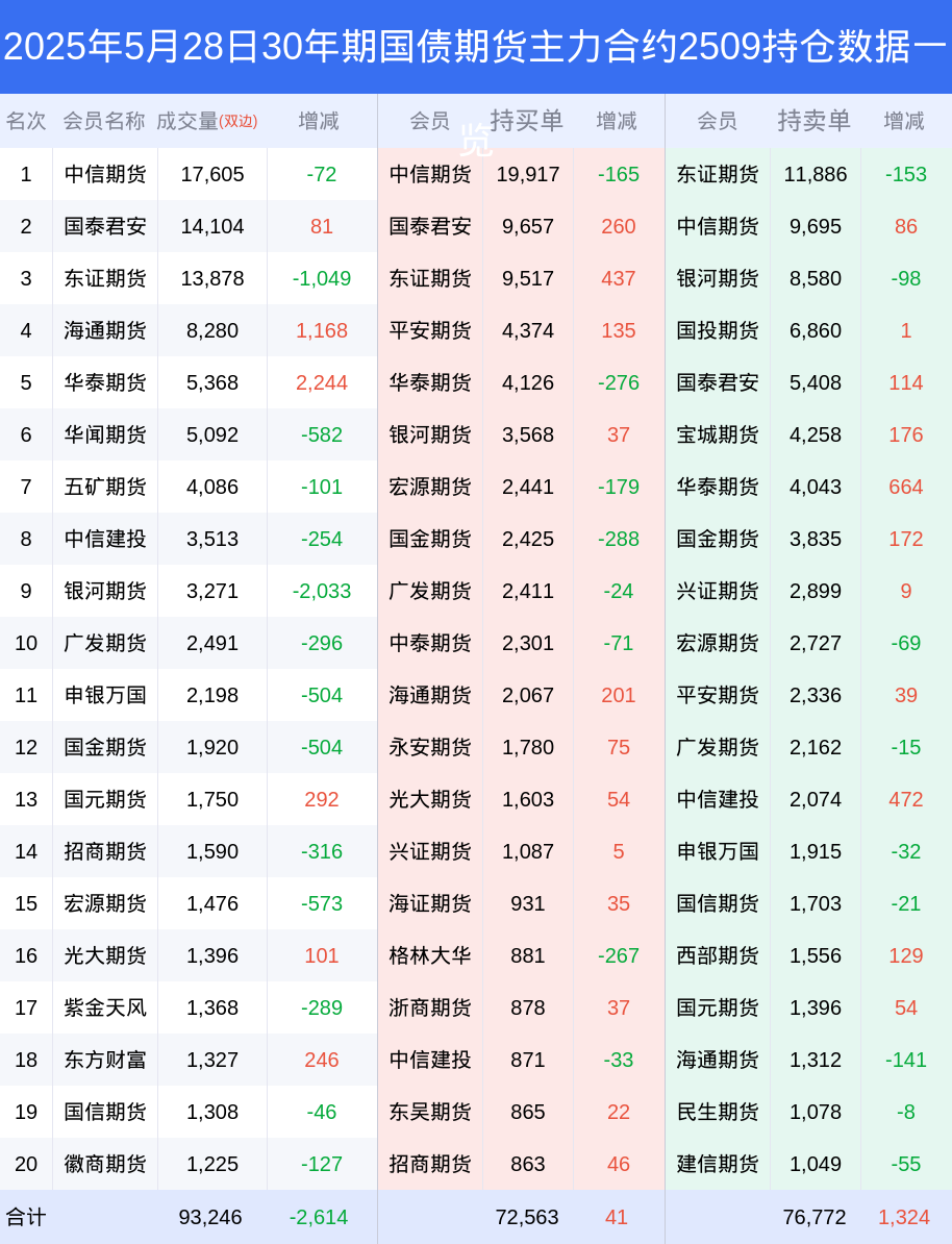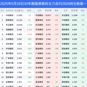 新浪期货 根据交易所数据,截至5月28日收盘主力合约30年期国债期货2509,涨跌-0.04%,成交量6.07万手,持仓数据显示前20席位呈现净空,差额头寸为4209手。