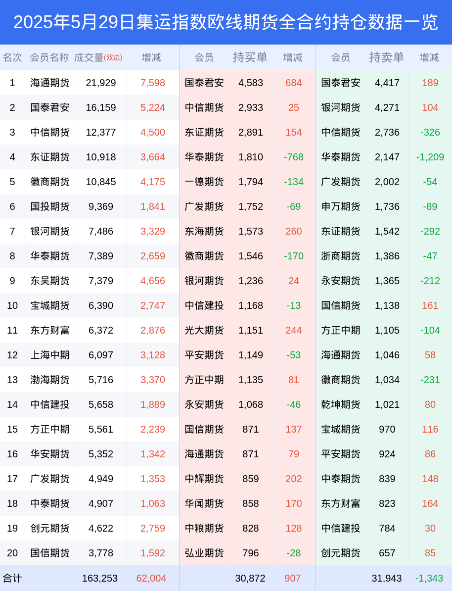 29日集运指数欧线期货上涨6.34%,最新持仓变化
