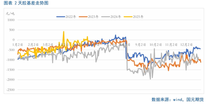 五一长假期间,在中美经贸高层会谈取得实质性进展的背景下,宏观市场回暖,提振大宗商品市场重心上移,受此影响,天胶2509合约盘面呈现出小幅修复态势。在宏观利好充分释放后,盘面又重回供需基本面,在供需错配下,市场重心持续回落。截至5月底,天胶2509合约盘面价格有进一步试探4月初低点的预期,继续关注是否能有效下破。从基差来看,按照季节性趋势来卡,基差仍有扩大的预期。