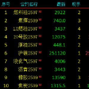 2025年5月30日,早盘收盘,国内期货主力合约涨跌互现。燃油跌超4%,焦煤、低硫燃料油(LU)跌超3%,20号胶、SC原油、沪锡跌近3%;涨幅方面,菜粕、多晶硅、集运指数(欧线)涨超1%,聚氯乙烯(PVC)、沪镍涨近1%。