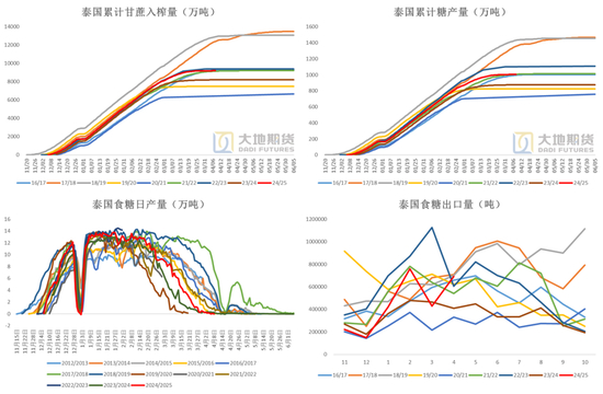 泰国24/25榨季停止压榨,目前糖产略低于预期。
