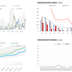 2025年4月CTC数据,巴西中南部甘蔗单产7.27吨/公顷,同比-16.6%;2025年5月上半月,巴西中南部累计甘蔗入榨量7671万吨,同比-20%;累计产糖量399万吨,同比-23%;累计产醇36.83亿升,同比-15%;累计制糖比48.61%,同期+1.01个百分点。
