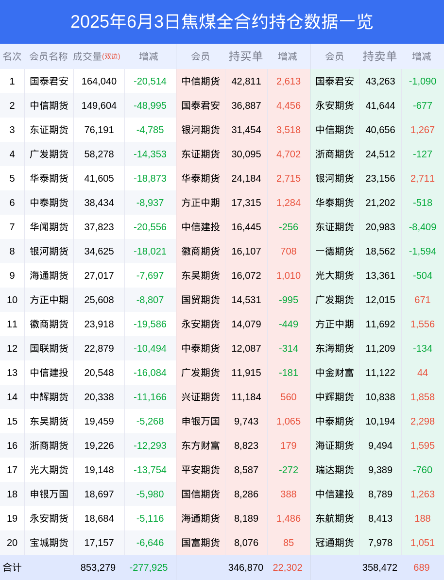 3日焦煤下跌3.03%,最新持仓变化
