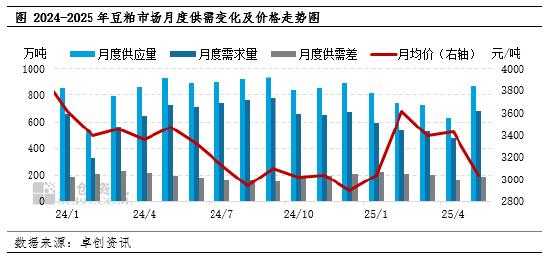 供应预期:原料大豆供应充足,开机负荷预计高位运行。根据卓创资讯对大豆到港预估以及国内压榨企业开停机情况调研显示6-8月大豆到港预计分别为1027万吨、950万吨、850万吨,大豆到港保持宽松预期,叠加进入高温天气巴西大豆不利于储存,工厂整体开工积极性较高,预计开工负荷呈现高位水平。工厂库存或逐步积累至较高水平,对现货价格带来压制。