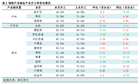 钢材上下游产业链开工负荷变化:原料端环比回升 钢材结构性波动
