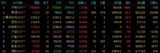 2025年6月5日,早盘开盘,国内期货主力合约涨跌不一,集运欧线、焦煤涨近2%,沪锡涨超1%。跌幅方面,PTA、瓶片、烧碱、SC原油、PX跌超1%。