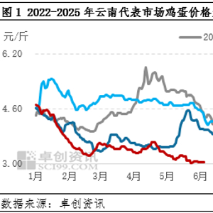 【导语】鸡蛋供应量逐步增多,加之恶劣天气条件影响下贸易端采购积极性不高,而各环节逐步积累被动库存,云南鸡蛋价格创新低。6月云南鸡蛋供应高位,需求受梅跌季影响偏弱,预计近期蛋价仍有0.10-0.25元/斤下探空间。