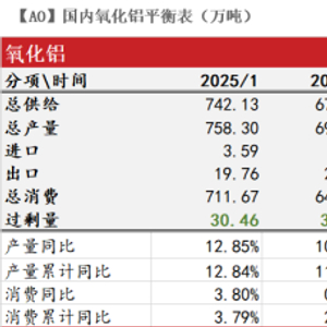 周度产量方面,上周氧化铝产量为167.4万吨,周环比+1.2万吨或0.72%。增加部分主要来自山西、河南、贵州三地复产。