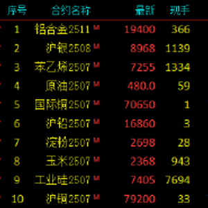 2025年6月10日,早盘开盘,国内期货主力合约涨跌不一。铸造铝合金涨超5%,沪银、苯乙烯、SC原油涨超1%。跌幅方面,焦煤、集运欧线跌超2%,纯碱、焦炭跌超1%。