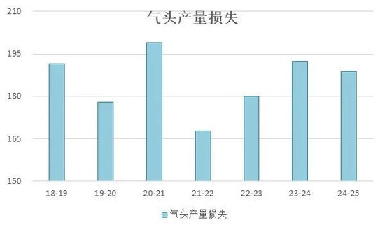 2025年4月,大部分气头装置恢复,月度损失量进一步下滑。