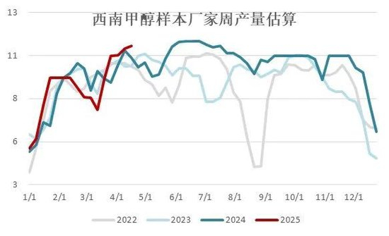 从产量数据来看,2024年年底西南地区产量的下滑速度相对较慢,2025年初产量迅速恢复,不过,2-3月仍有部分气头装置因故障等因素降负或停车,因此,产量出现短暂的下滑。