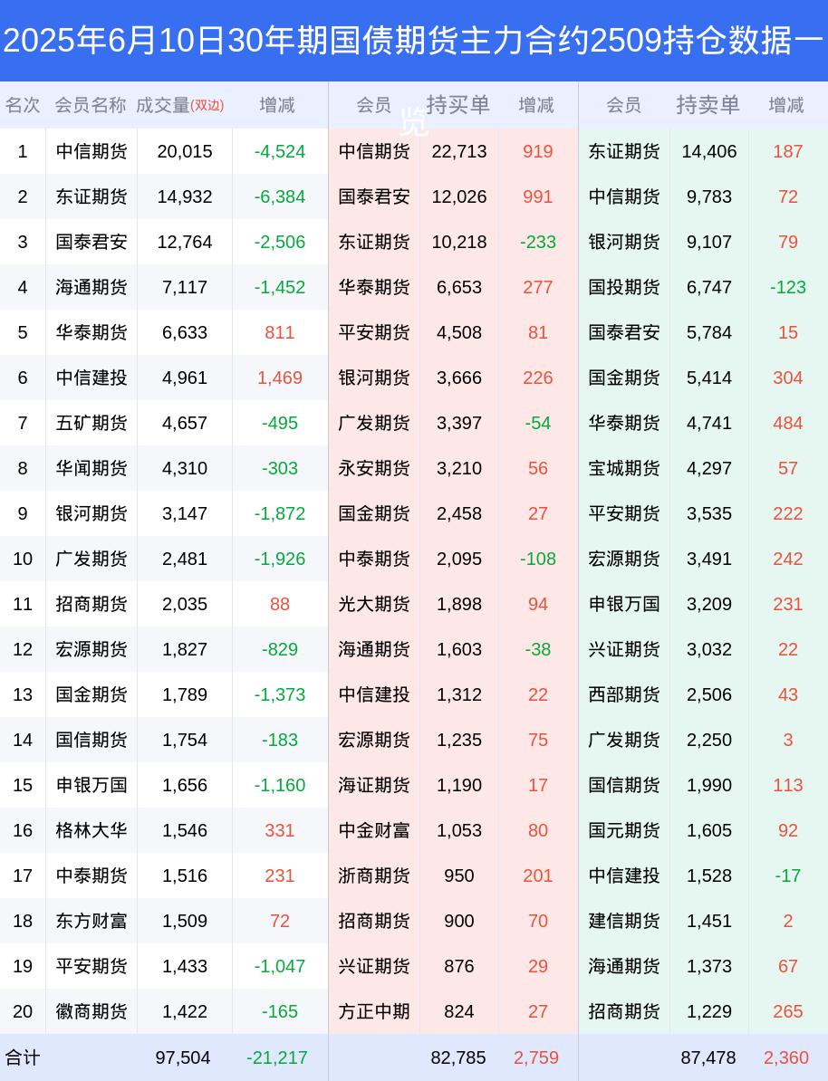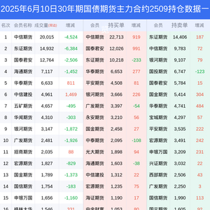 新浪期货 根据交易所数据,截至6月10日收盘主力合约30年期国债期货2509,涨跌+0.07%,成交量6.28万手,持仓数据显示前20席位呈现净空,差额头寸为4693手。